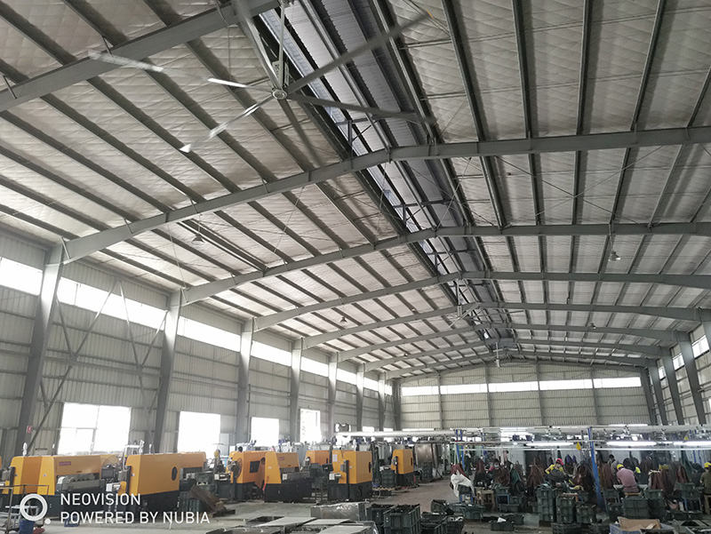 5、安裝不影響工作:風扇安裝在離地面5.5米以上的上部空間,通過卡夾方式固定在屋面結構梁上,不會影響任何地面工作區(qū)域正常工作進程,安全可靠。