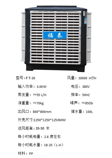 福泰環(huán)保空調性能穩(wěn)定在越炎熱的天氣下降溫的效果越好。適用于開敞式及半開敞式環(huán)境,能夠直接輸送自然風及輸送降溫后的涼風。室外新鮮空氣經(jīng)福泰蒸發(fā)式冷氣機過濾、降溫后向室內源源不斷的大量輸送,將室內帶有異味、粉塵和混濁悶熱的空氣排出室外,同時兼顧換氣降溫及增加空氣含氧量等多種效果。